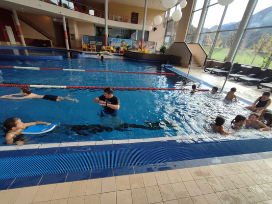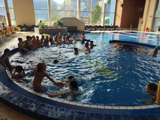 Am Mittwoch, den 22.10. und an den kommenden vier "Schulmittwochen" haben die beiden 2. Klassen einen Schwimmkurs im "Aqua-Salza" in Golling. Die ersten beiden Kursstunden mit unserem